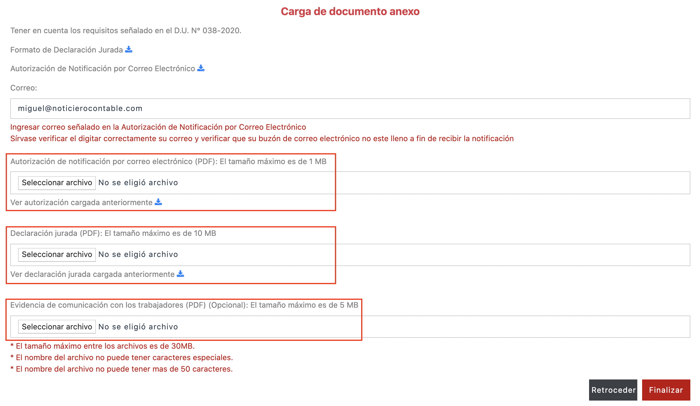 Si, en el adjunto es la declaración jurada + el correo electrónico, en el segundo adjunto tu justificación.