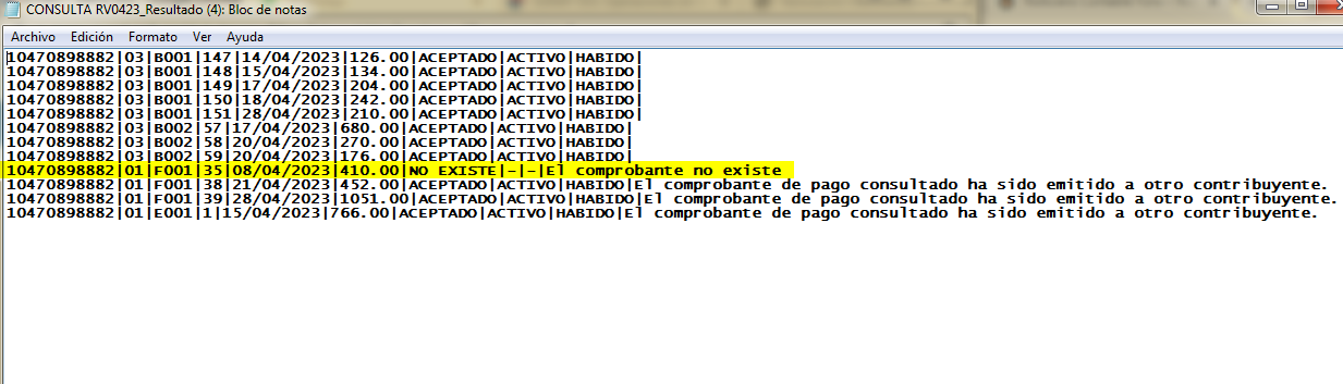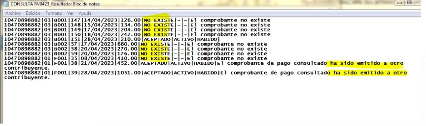 y revisando en los sistemas del facturador(tercero), estaba todo ok aceptado, y se declaró tal cual. Ahora después de esta alerta se hizo la consulta de validez de comprobantes; y sale que no existen: