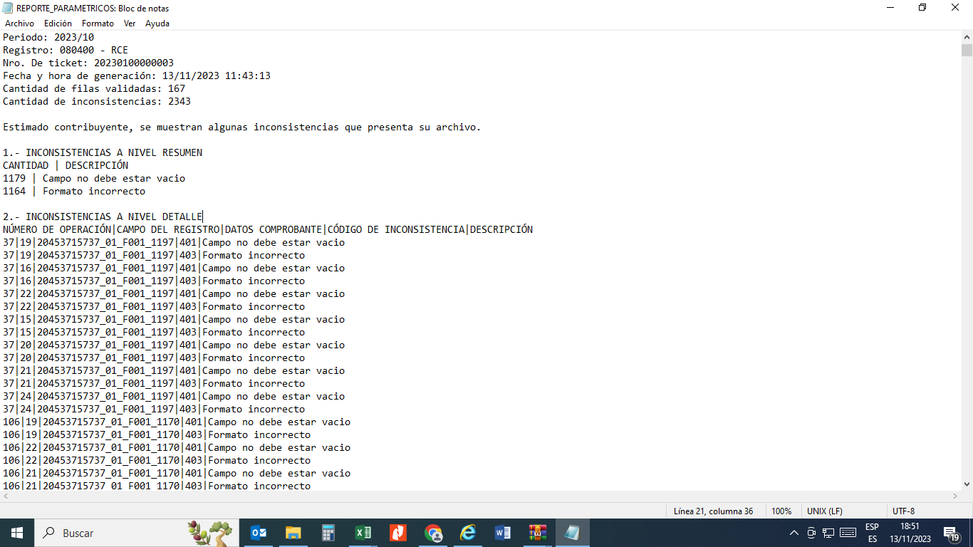 Buenas noches, al reemplazar el SIRE compras me sale inconsistencias funcionales y paramétricos; la consulta es si ambas se deben levantar y desde la columna 15 a la 25 deben ir todo con 0.00 en caso de no tener montos a declarar o también puede ir en blanco. Porque en la fila 37 por ejemplo me sale varias columnas indicando "Campo no debe estar vacío" y "Formato incorrecto"