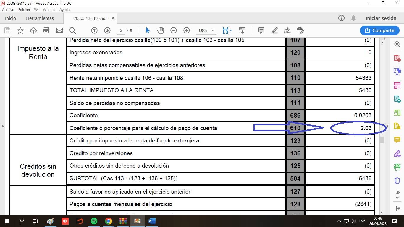 La empresa en el 22022 tuvo ventas de 280000 soles aprox y en gastos tuvo 130000 aprox y voto una utilidad de 50000 soles, al momento de enviare la DJ anual 2022, aparece un coeficiente de 2.03 en la casilla 610 , pero en resumen la empresa no supero las 300 UIT anuales entonces por mas que aparesca alli no tendria problemas en seguir aplicando el 1% ya que la empresa no supero las 300 UIT.