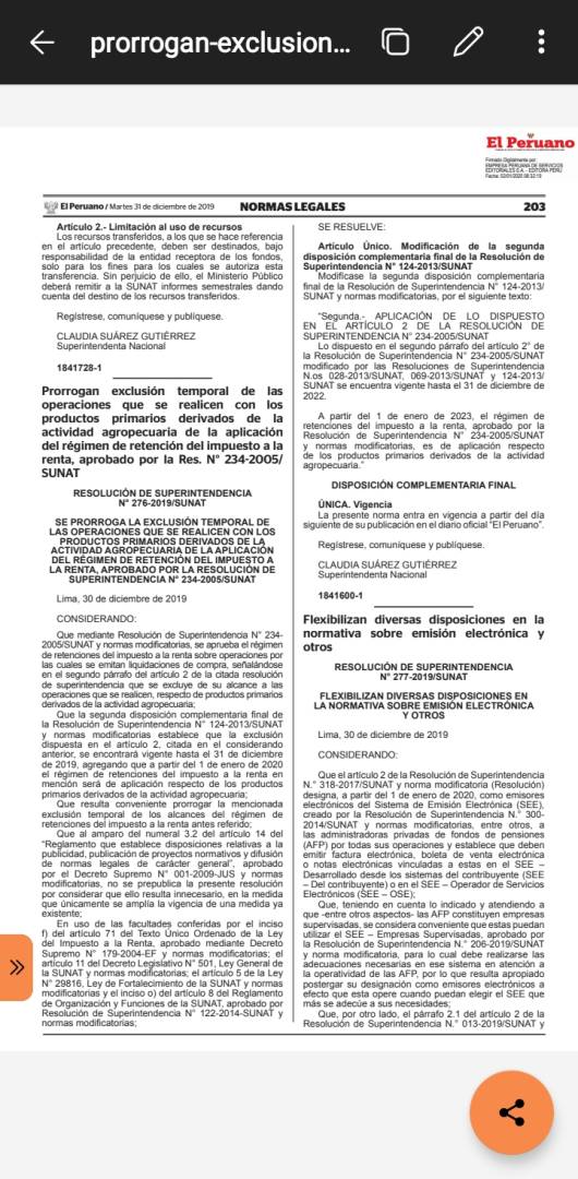 Buenas noches, leer la Res.Sup.276-2019/Sunat, según interpretó que es una prorroga que excluye de las retenciones de renta en la emisión de Liquidaciones de Compra por productos agrop. vigente hasta el 31.12.2022.