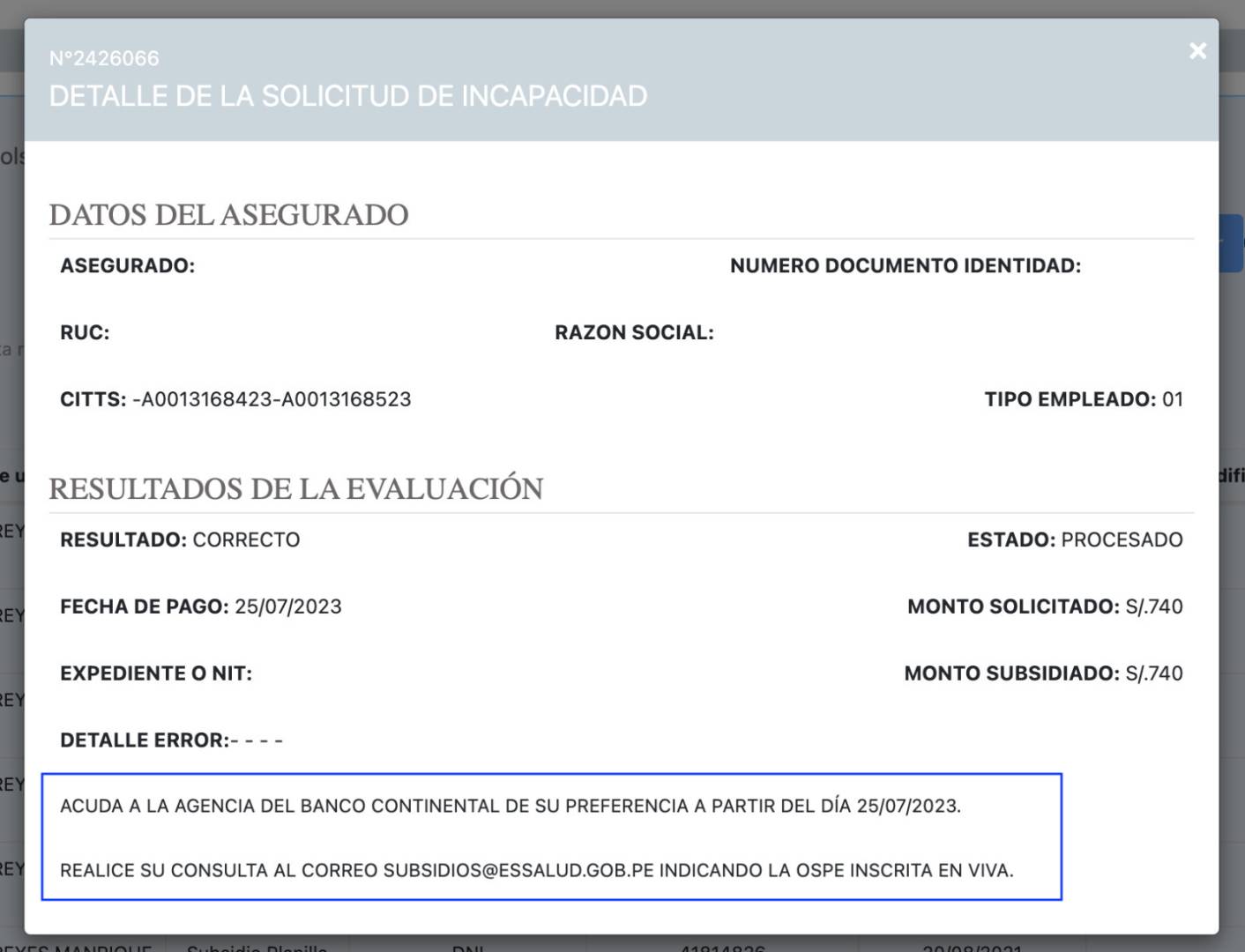 Buenos días Miguel, una consulta, gracias por la respuesta, en Agosto 2022 se realizó el trámite de subsidio por maternidad, ingresé al sistema a consultar y aparece que ha estado disponible en agosto 2022, no se llegó a realizar el abono a la cuenta de la empresa, que paso debo de seguir para solicitar de nuevo. Muchas gracias.