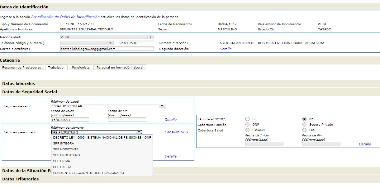 buenas tardes, una consulta por favor me podrias alcanzar un formato de DDJJ que comunique el trabajador al empleador que ya no desea aportar a la AFP, ya que se jubilo por edad legal y retiro el 95.5%, y por otra parte como lo modifico en el t-registro? en que opciones lo registro en el régimen pensionario? en que categoría lo registro como TRABAJADOR O PENSIONISTA?