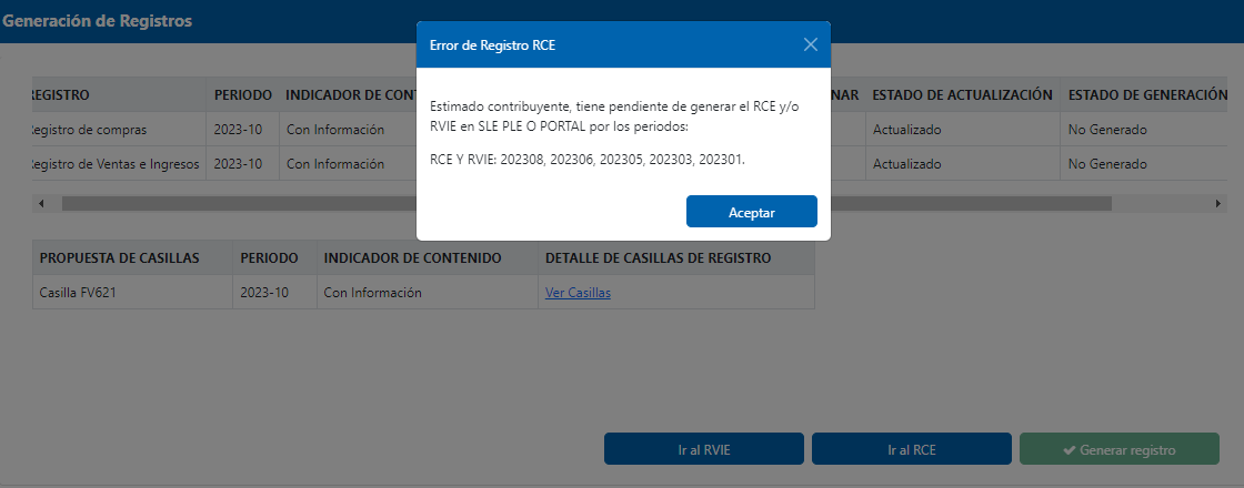 He aceptado la propuesta de sunat en RC y RV, luego de darle check al registro de compras y ventas, y darle generar registro, me ha salido esta observación, comentar que la empresa es PN-MYPE, no estaba obligada a llevar PLE, lleva sus registros computarizados.