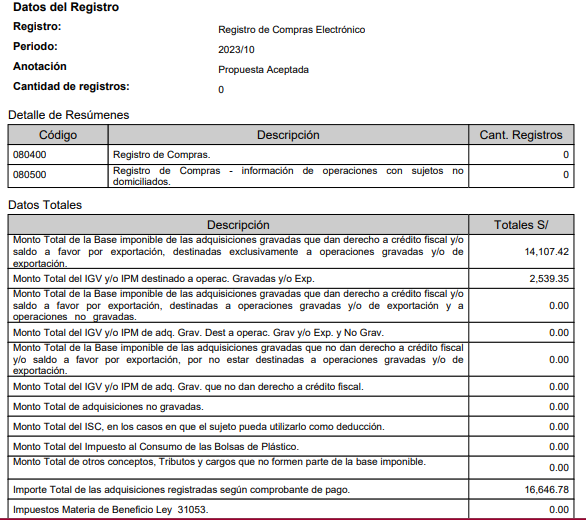 Al enviar el SIRE y PDT habían inconsistencias porque la propuesta se acepto y se agrego 2 facturas anteriores, entonces se digito los montos para enviar el PDT correcto con el SIRE. Pero al revisar el buzón me encuentro con el mensaje siguiente: