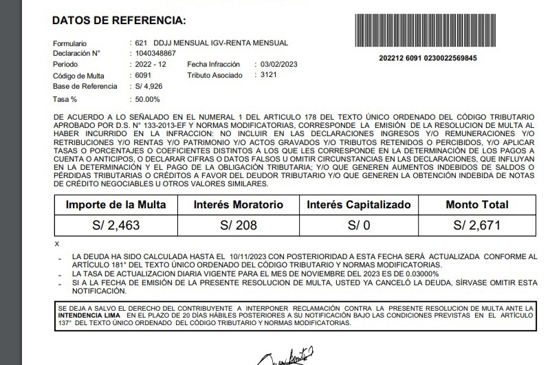 SI ME DOY CUENTA QUE EN DICIEMBRE 2022 SE DEBIO CONSIGNAR PARA PAGAR EL IR MENSUAL EL COEFICIENTE Y SE DECLARO SOLO CON EL 1.5%, AL RECTIFICAR ME SALE UNA DIFERENCIA POR PAGAR DE 4000 SOLES SE TENDRIA QUE PAGAR MULTA POR DATOS FALSOS. YA QUE AL DECLARAR LA DDJJ ANUAL SALIO RENTA A PAGAR.