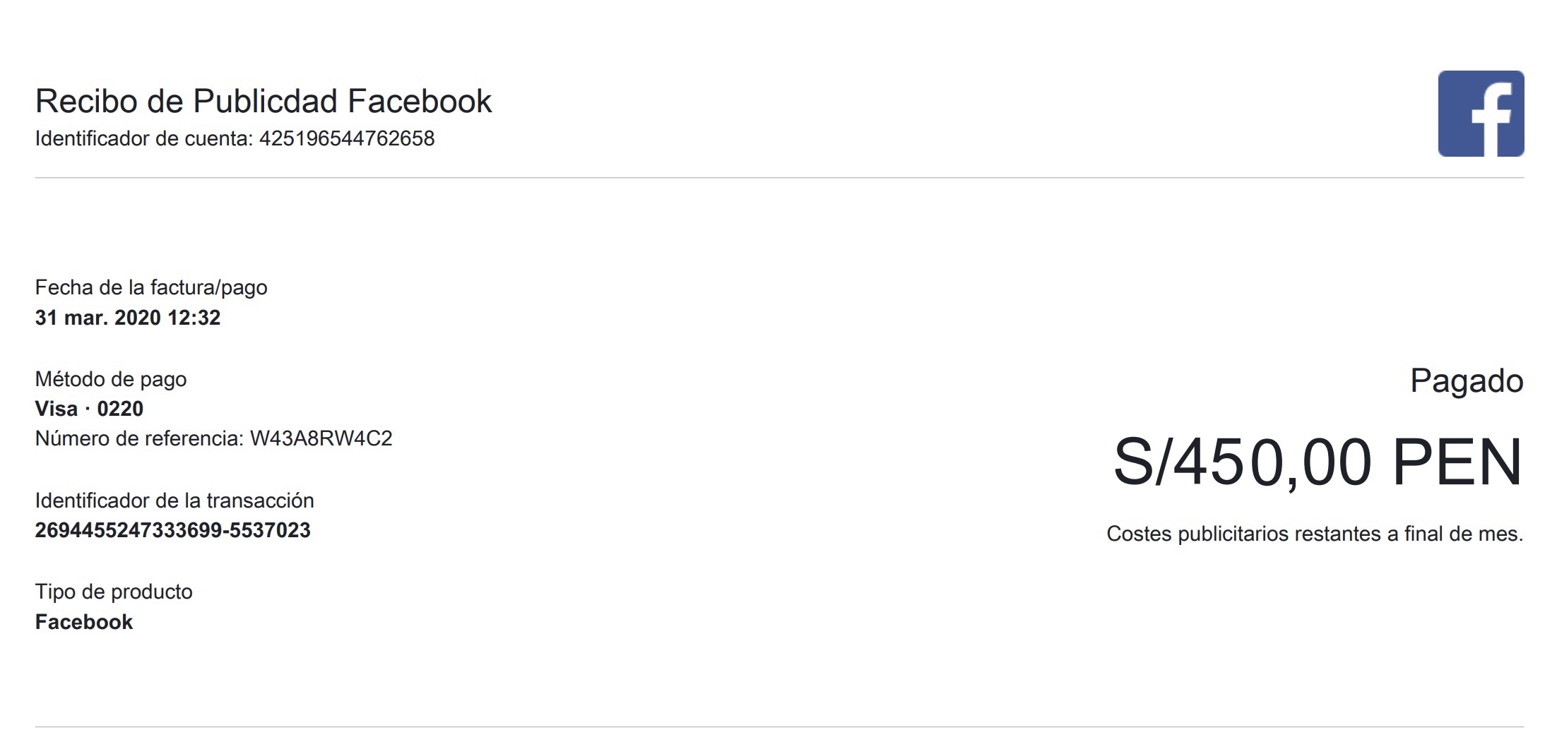 Ejemplo: Pago 500.00 via plataforma a Facebook yo empresa tengo que pagar 18% de los 500.00 y 30% DE 500.00