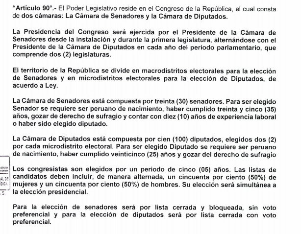 - Proyecto de Ley de Reforma Constitucional que regula la Bicameralidad del Congreso de la Republica